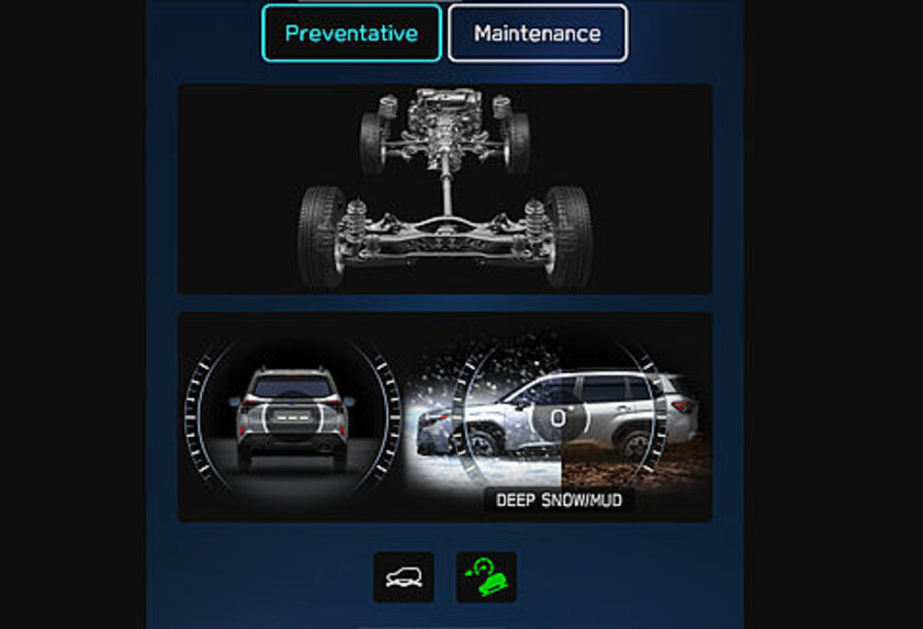 Der symmetrische AWD von Subaru bewährt sich mit seiner sicheren Traktion auf rutschigem Grund in beruhigender Weise. In einer horizontalen Ebene ausgelegt, überzeugt das System durch einen tiefen Schwerpunkt und eine entsprechend hohe Fahrstabilität.