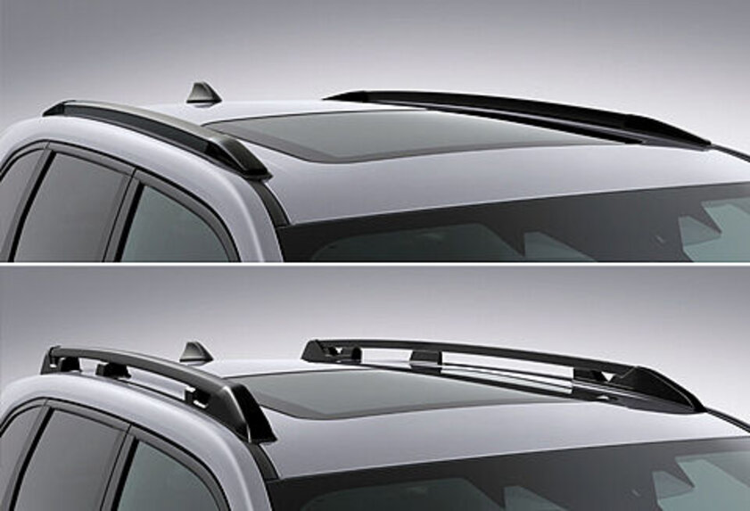 Dank den seitlichen Trittschwellen bei den Hintertüren kommen Sie leicht an die Reling und können Festhalteseile oder Spezialträger fixieren. Dachreling niedrig (Modell Luxury) Dachreling hoch (alle Modelle ausser Luxury)